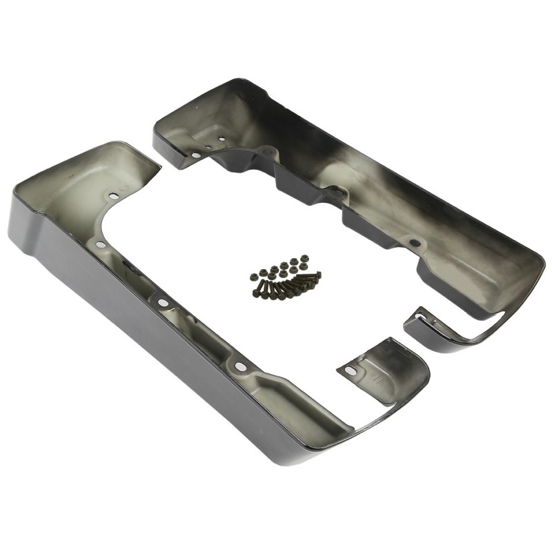DESCRIPTION: Aftermarket 100% Brand New No adjustments need ,Easy to install back on original position No install instructions Color: Vivid Black Finish ( No Need to paint ) Material: Very High Quality ABS 4" Extension to give your saddlebags the "tail dragger" look Double Cut for Dual Exhausts These extensions ..